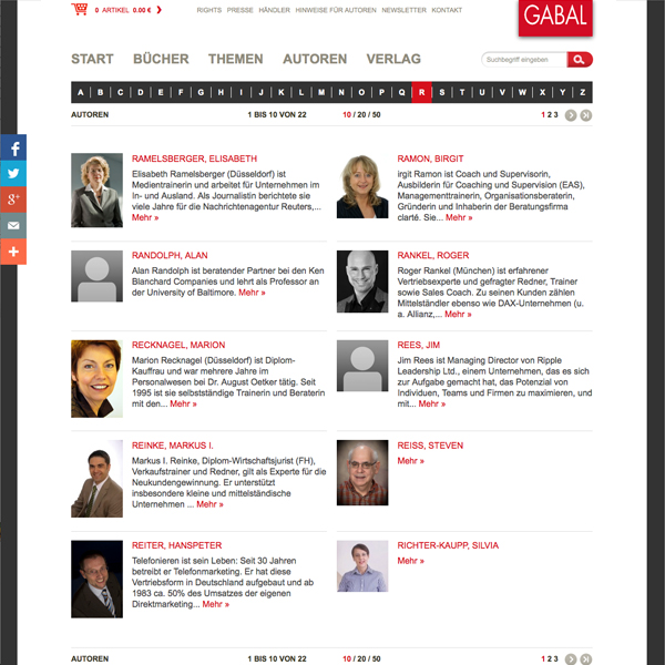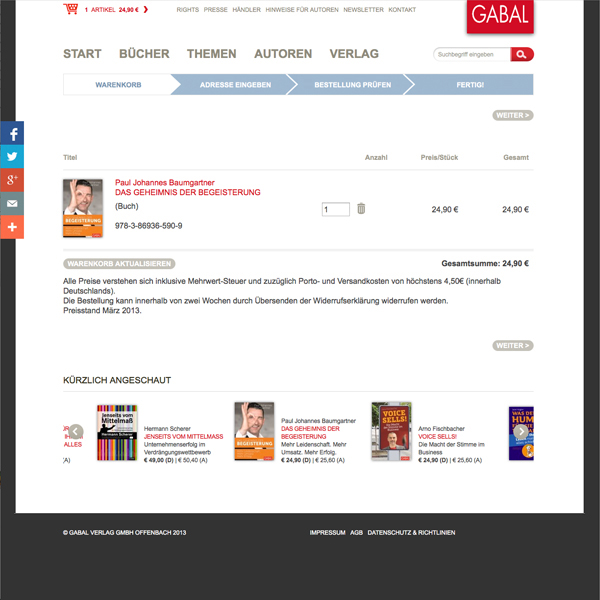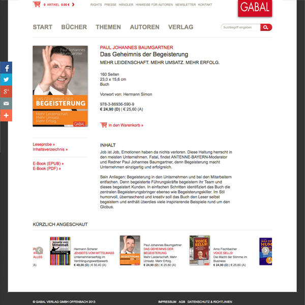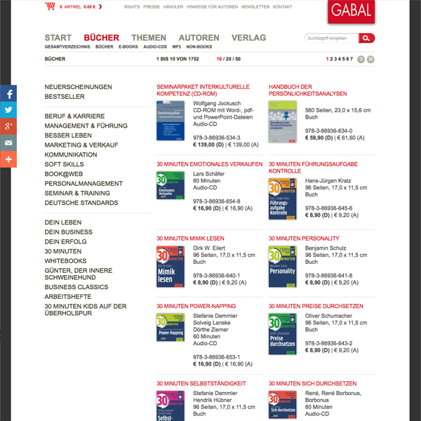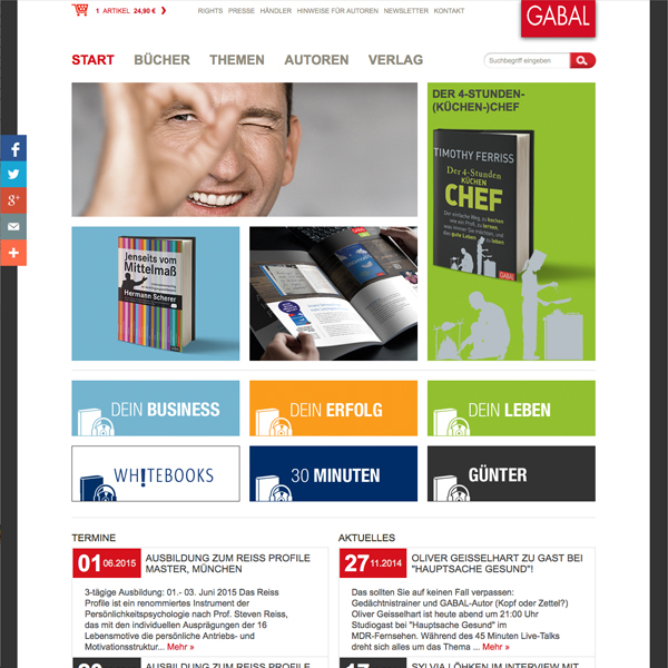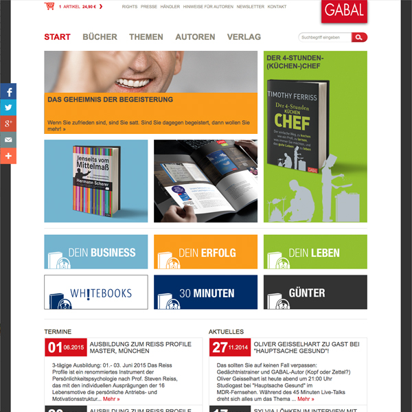 Herausforderung: Mit Büchern zur beruflichen und persönlichen Weiterentwicklung will der GABAL Verlag seine Leser nach vorn bringen. Das sollte auf der Internetseite des Wirtschaftsverlags stärker hervorgehoben werden ebenso eine starke Betonung auf die Verlagseigene Marken. opus 5 erhielt den Auftrag, einen Soft-Relaunch der Webpräsenz vor zunehmen.