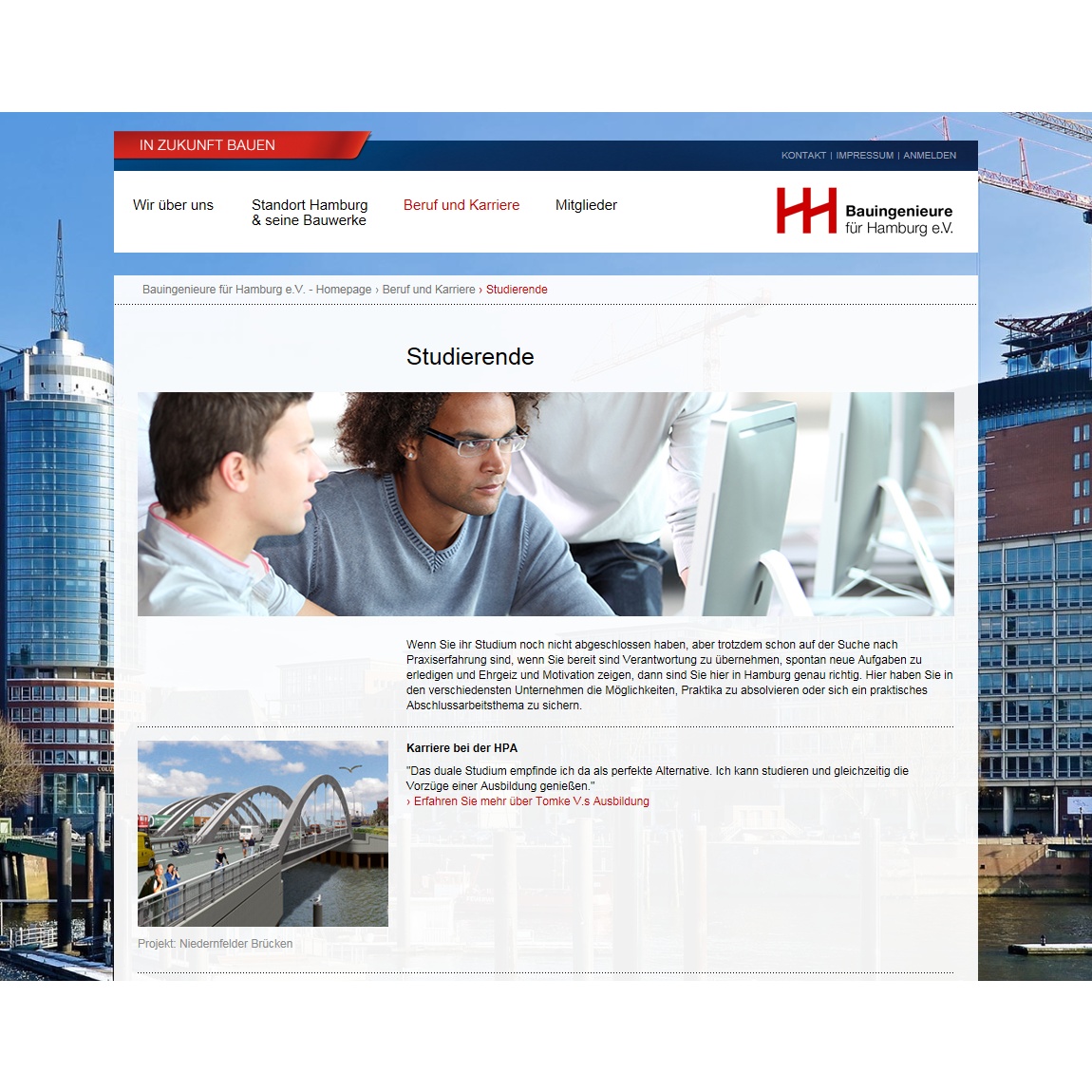 Gestaltung und Umsetzung eines Dachmarkenportals für Bauingenieure für Hamburg e.V.