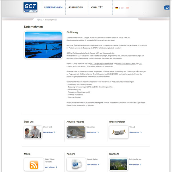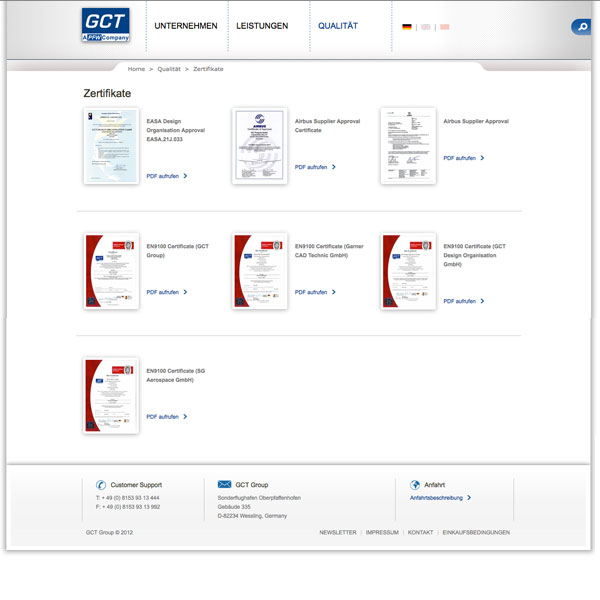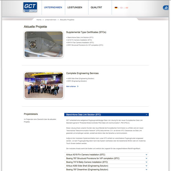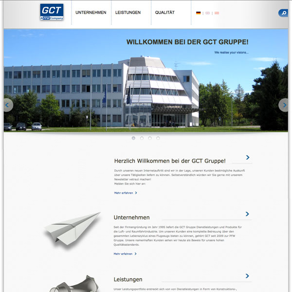 Herausforderung: Die PFW Aerospace AG, ein Tochterunternehmen der Airbus Deutschland GmbH, hat opus 5 mit dem Relaunch ihres Internetportals beauftragt. Ebenso sollte das Portal der Unternehmenstochter GCT Group erneuert werden. Der Hersteller von Komponenten für die Luftfahrtindustrie wünschte sich einen zeitgemäßen und klar strukturierten Internetauftritt.